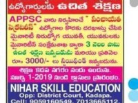 Advertisement published in Prajashakthi daily newspaper on September 18, 2023 regarding the free training & placements programme in different courses at Nihar Skill Education, Kadapa.